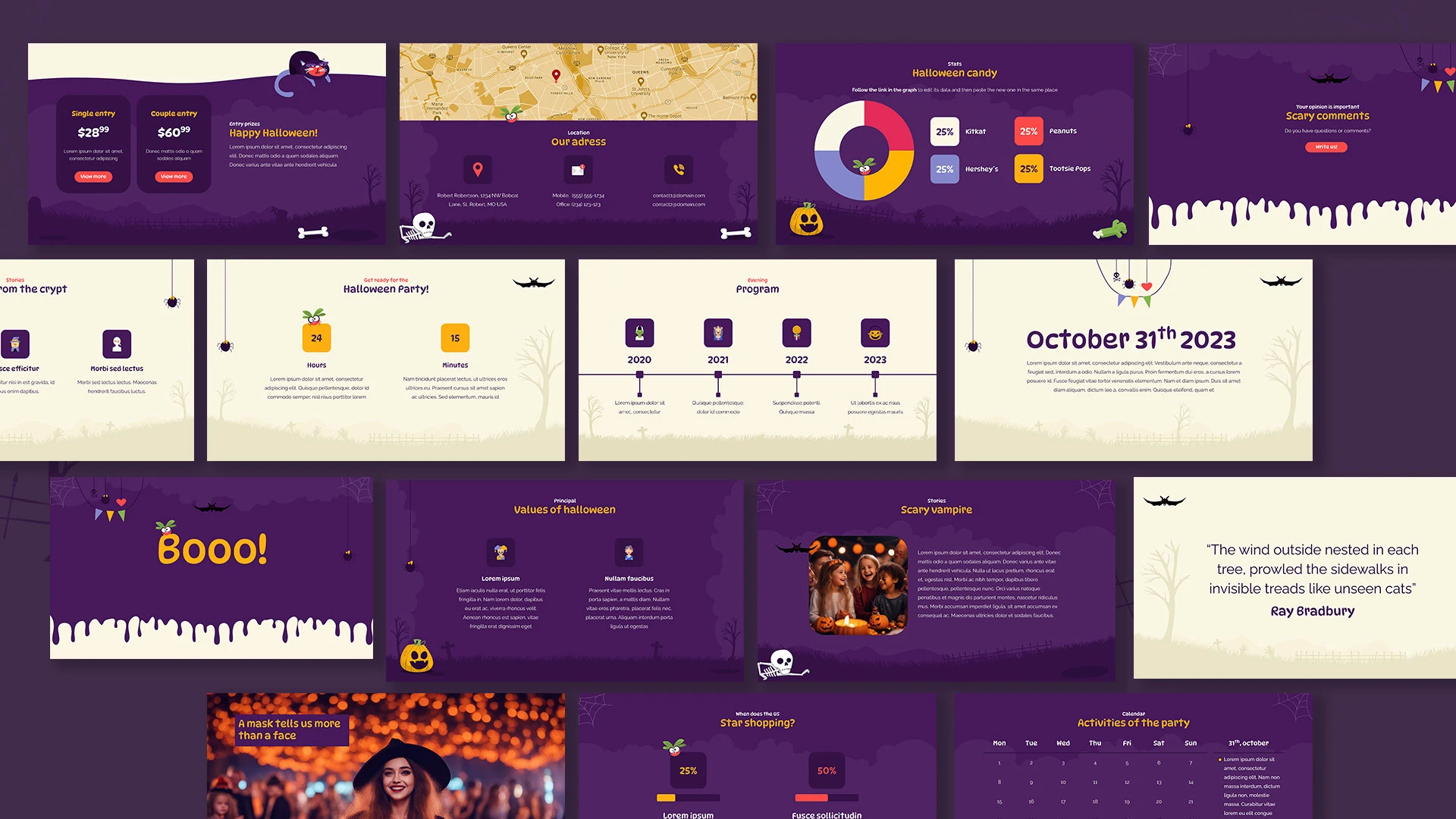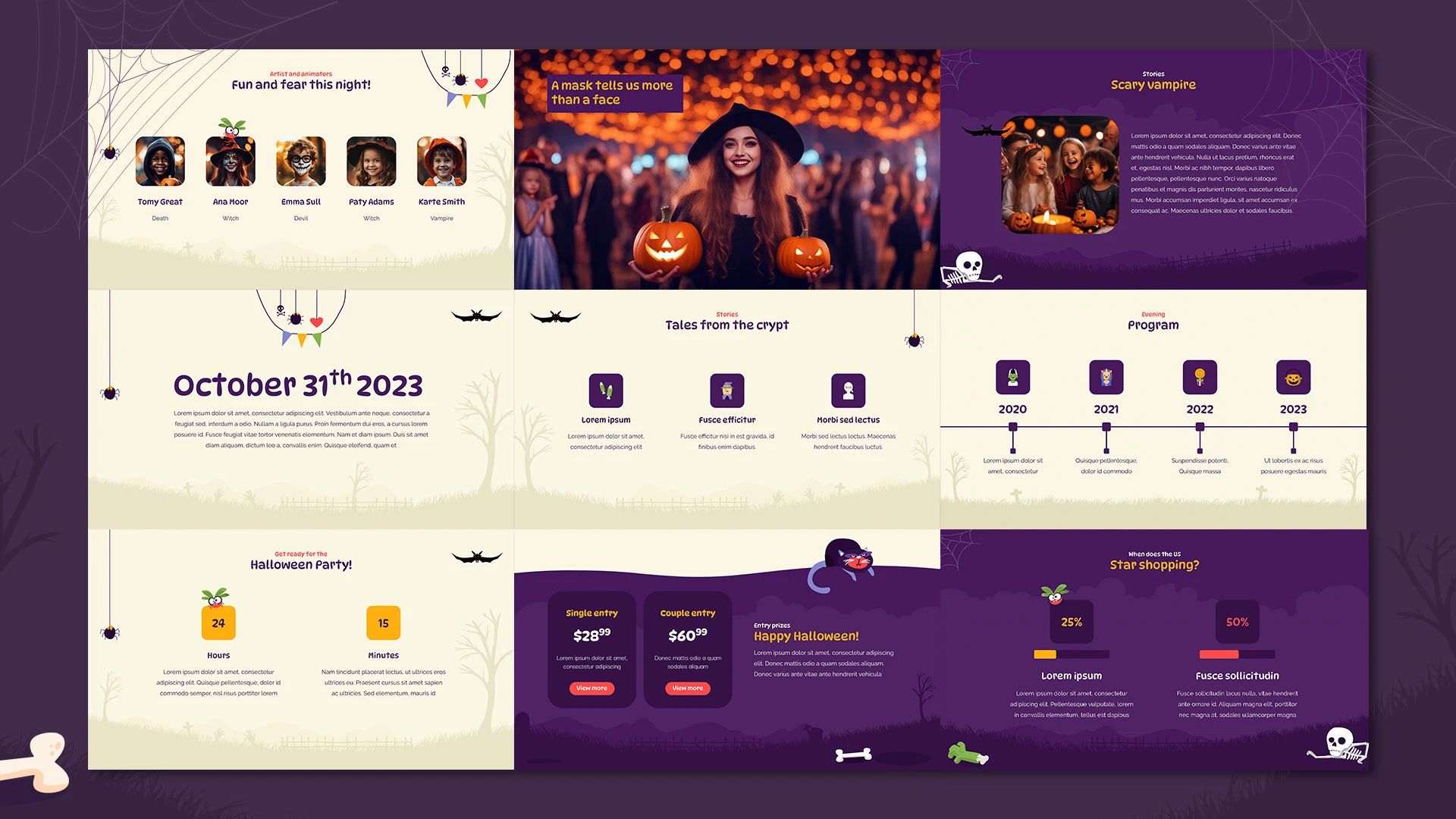 Una presentación de Halloween bien diseñada puede marcar la diferencia en cualquier evento, clase o reunión corporativa. No solo capta la atención de tu audiencia, sino que también ayuda a transmitir tu mensaje de manera divertida y memorable. Incorporar elementos visuales relacionados con Halloween, como gráficos temáticos, colores característicos y animaciones ligeras, mantiene a tu público interesado y comprometido.